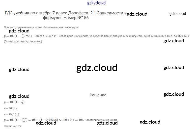 Ответ на задание 156 Учебник Алгебра  за 7 (седьмой) класс Дорофеев, Суворова, Бунимович Академический школьный учебник  2020