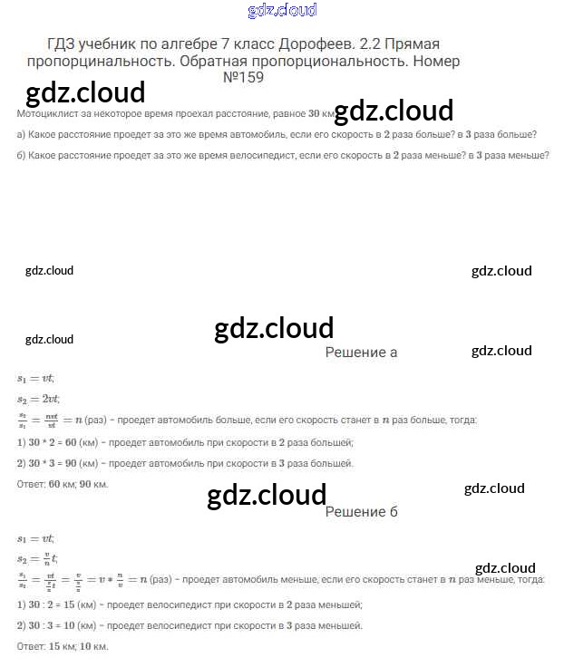 Ответ на задание 159 Учебник Алгебра  за 7 (седьмой) класс Дорофеев, Суворова, Бунимович Академический школьный учебник  2020