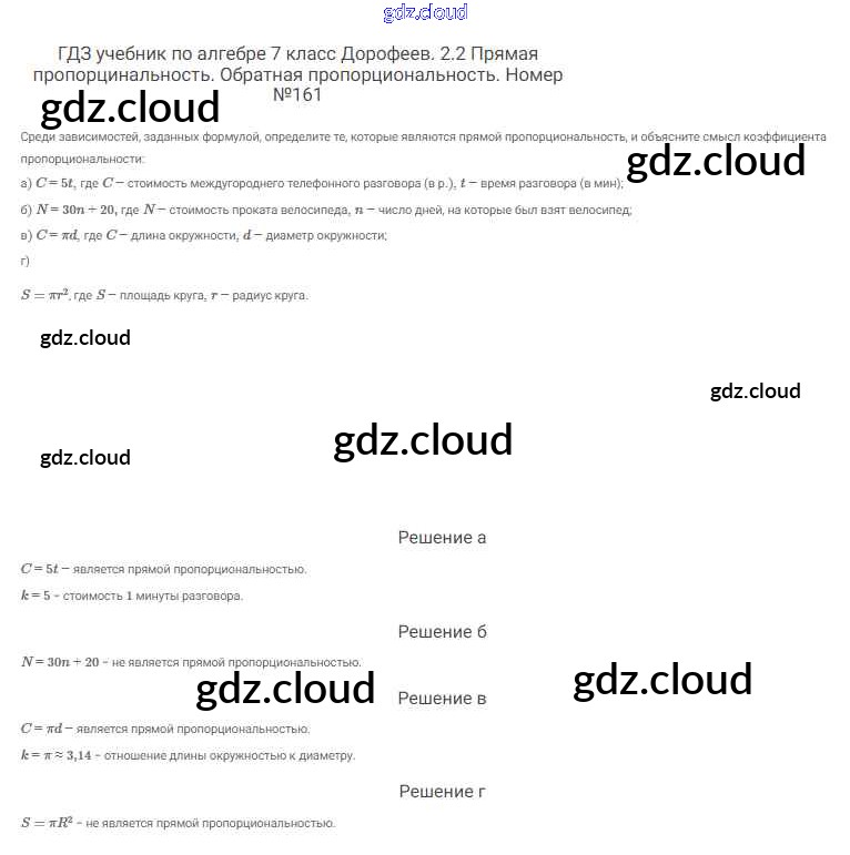 Ответ на задание 161 Учебник Алгебра  за 7 (седьмой) класс Дорофеев, Суворова, Бунимович Академический школьный учебник  2020