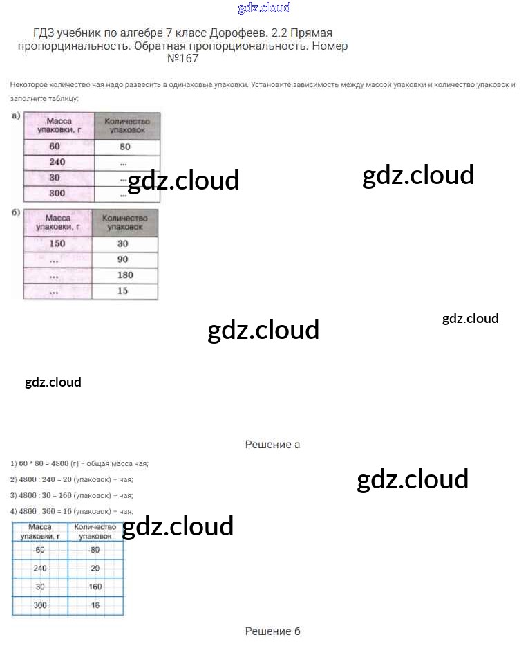 Ответ на задание 167 Учебник Алгебра за 7 (седьмой) класс Дорофеев, Суворова, Бунимович Академический школьный учебник 2020