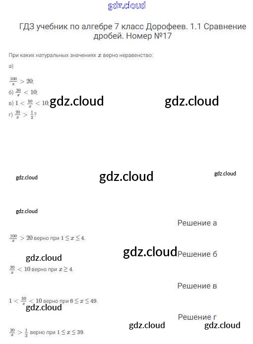 Ответ на задание 17 Учебник Алгебра за 7 (седьмой) класс Дорофеев, Суворова, Бунимович Академический школьный учебник 2020