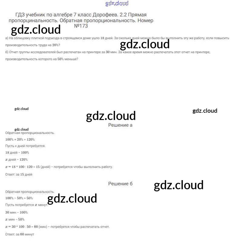 Ответ на задание 173 Учебник Алгебра  за 7 (седьмой) класс Дорофеев, Суворова, Бунимович Академический школьный учебник  2020