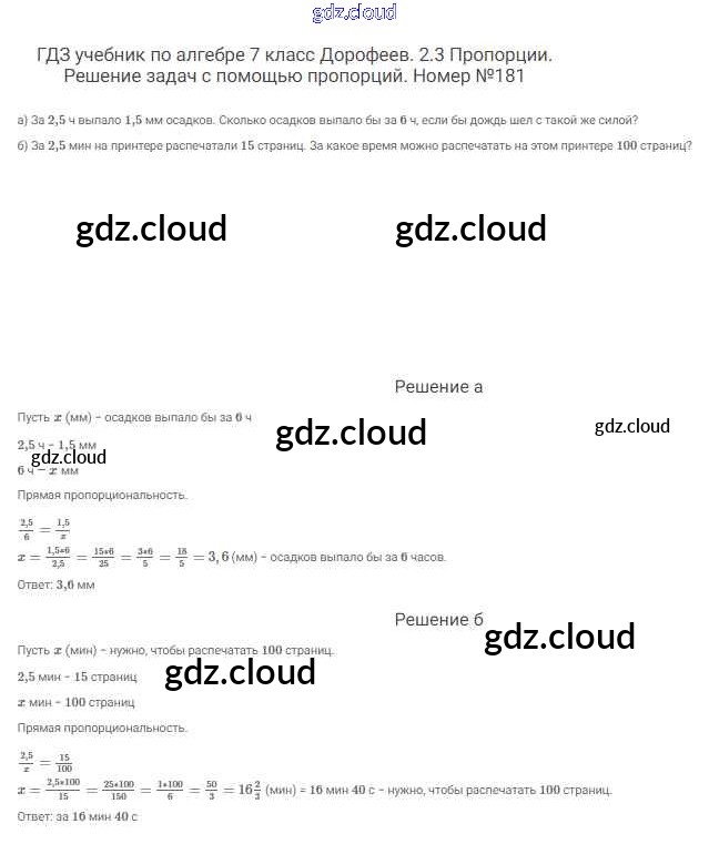 Ответ на задание 181 Учебник Алгебра за 7 (седьмой) класс Дорофеев, Суворова, Бунимович Академический школьный учебник 2020