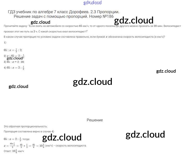 Ответ на задание 186 Учебник Алгебра  за 7 (седьмой) класс Дорофеев, Суворова, Бунимович Академический школьный учебник  2020