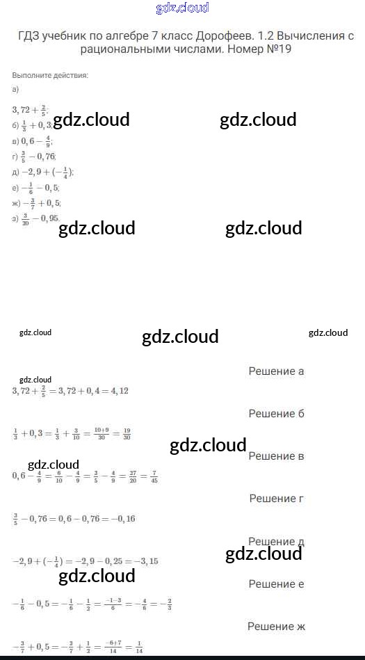 Ответ на задание 19 Учебник Алгебра  за 7 (седьмой) класс Дорофеев, Суворова, Бунимович Академический школьный учебник  2020