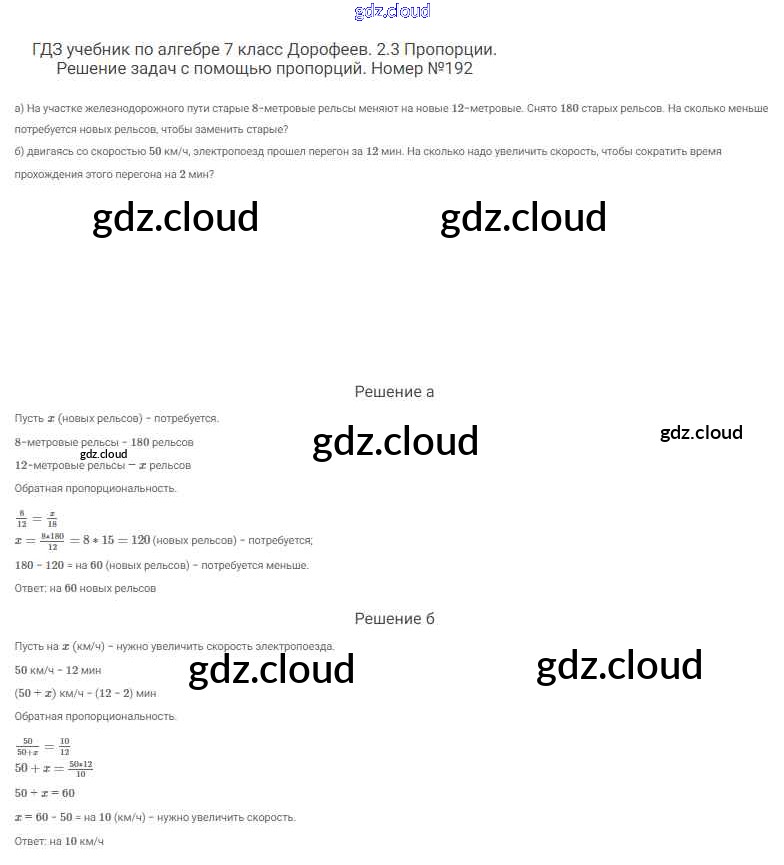 Ответ на задание 192 Учебник Алгебра  за 7 (седьмой) класс Дорофеев, Суворова, Бунимович Академический школьный учебник  2020