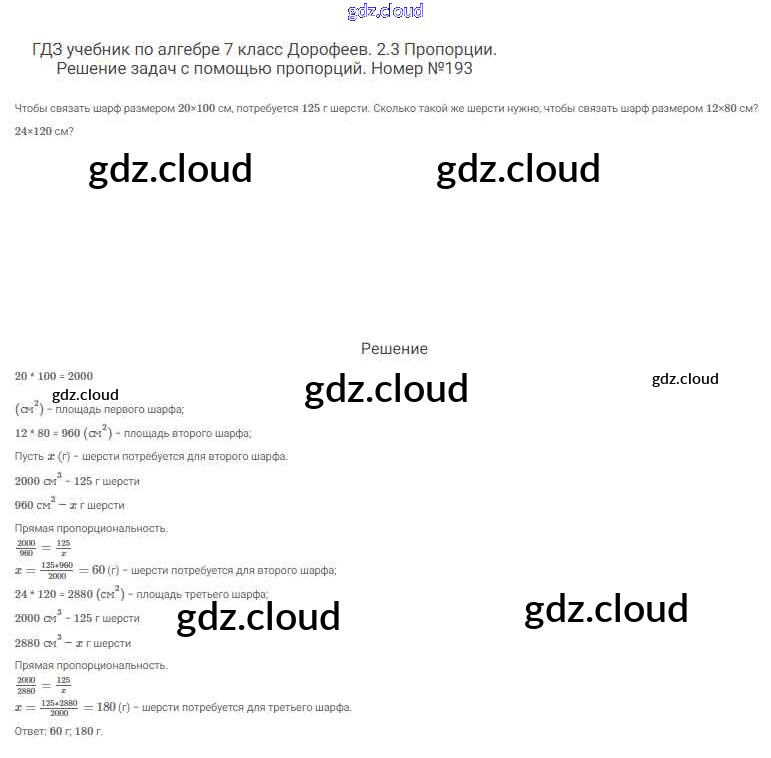 Ответ на задание 193 Учебник Алгебра за 7 (седьмой) класс Дорофеев, Суворова, Бунимович Академический школьный учебник 2020