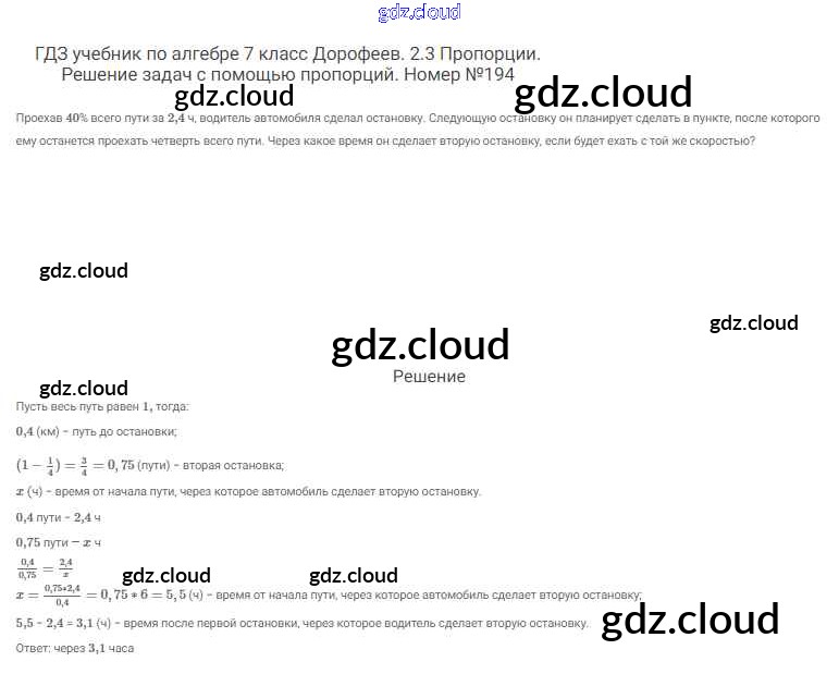 Ответ на задание 194 Учебник Алгебра  за 7 (седьмой) класс Дорофеев, Суворова, Бунимович Академический школьный учебник  2020