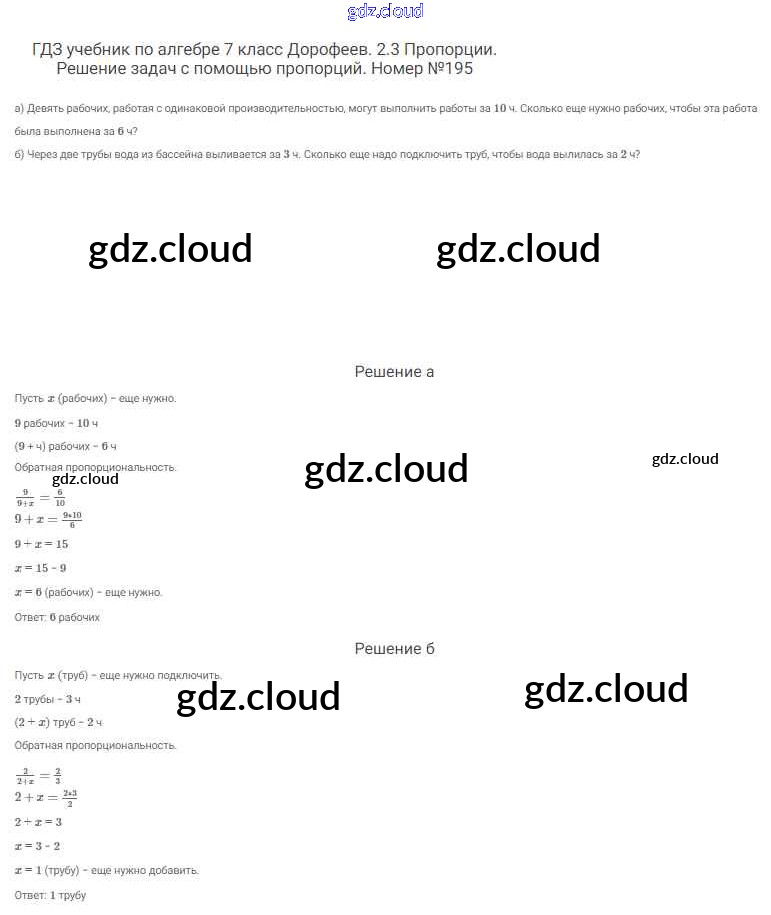 Ответ на задание 195 Учебник Алгебра  за 7 (седьмой) класс Дорофеев, Суворова, Бунимович Академический школьный учебник  2020