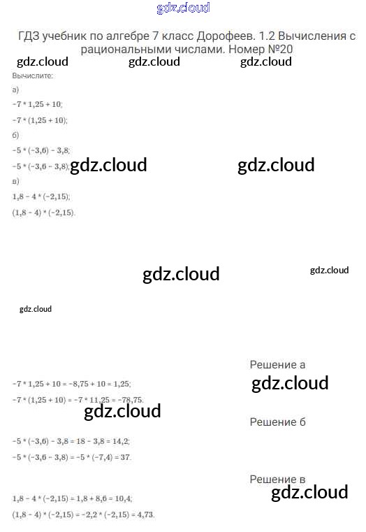 Ответ на задание 20 Учебник Алгебра за 7 (седьмой) класс Дорофеев, Суворова, Бунимович Академический школьный учебник 2020