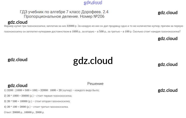Ответ на задание 206 Учебник Алгебра  за 7 (седьмой) класс Дорофеев, Суворова, Бунимович Академический школьный учебник  2020