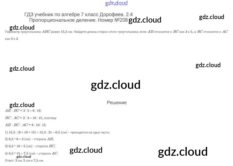 Ответ на задание 208 Учебник Алгебра  за 7 (седьмой) класс Дорофеев, Суворова, Бунимович Академический школьный учебник  2020