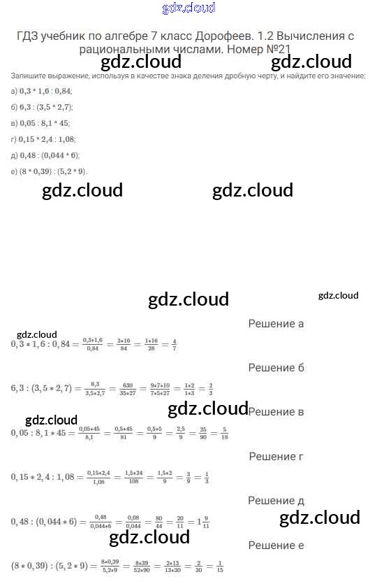 Ответ на задание 21 Учебник Алгебра за 7 (седьмой) класс Дорофеев, Суворова, Бунимович Академический школьный учебник 2020