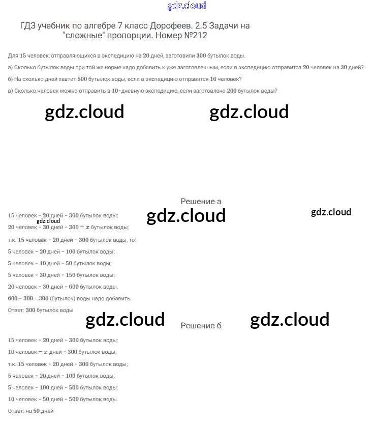 Ответ на задание 212 Учебник Алгебра за 7 (седьмой) класс Дорофеев, Суворова, Бунимович Академический школьный учебник 2020