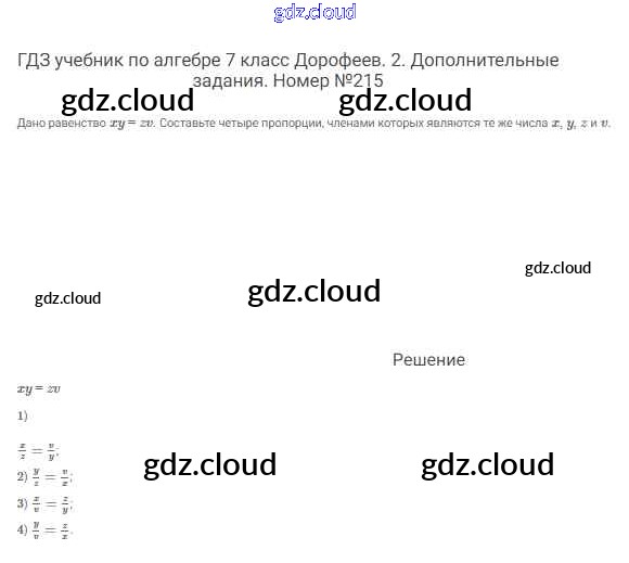 Ответ на задание 215 Учебник Алгебра за 7 (седьмой) класс Дорофеев, Суворова, Бунимович Академический школьный учебник 2020
