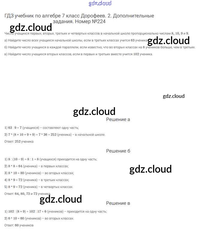 Ответ на задание 224 Учебник Алгебра  за 7 (седьмой) класс Дорофеев, Суворова, Бунимович Академический школьный учебник  2020