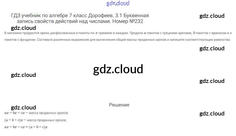 Ответ на задание 232 Учебник Алгебра  за 7 (седьмой) класс Дорофеев, Суворова, Бунимович Академический школьный учебник  2020