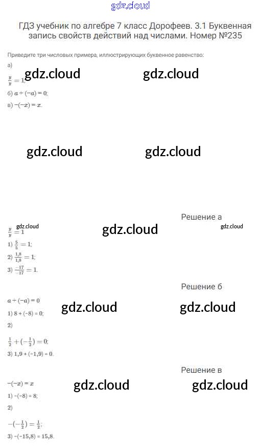 Ответ на задание 235 Учебник Алгебра  за 7 (седьмой) класс Дорофеев, Суворова, Бунимович Академический школьный учебник  2020