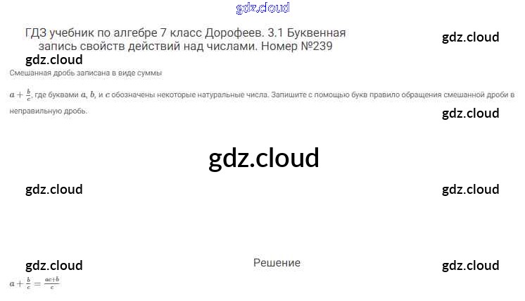 Ответ на задание 239 Учебник Алгебра  за 7 (седьмой) класс Дорофеев, Суворова, Бунимович Академический школьный учебник  2020