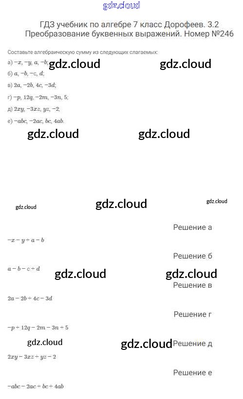 Ответ на задание 246 Учебник Алгебра  за 7 (седьмой) класс Дорофеев, Суворова, Бунимович Академический школьный учебник  2020
