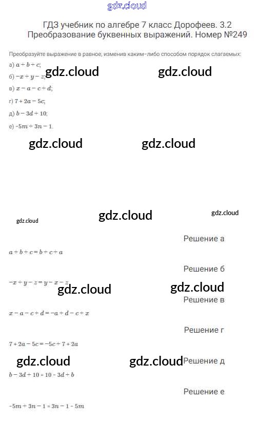 Ответ на задание 249 Учебник Алгебра  за 7 (седьмой) класс Дорофеев, Суворова, Бунимович Академический школьный учебник  2020