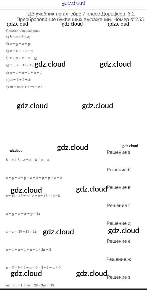 Ответ на задание 255 Учебник Алгебра  за 7 (седьмой) класс Дорофеев, Суворова, Бунимович Академический школьный учебник  2020