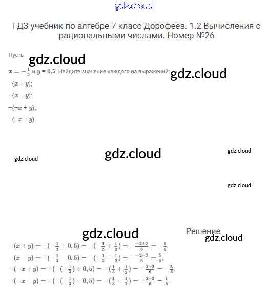 Ответ на задание 26 Учебник Алгебра  за 7 (седьмой) класс Дорофеев, Суворова, Бунимович Академический школьный учебник  2020