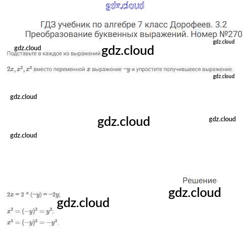 Ответ на задание 270 Учебник Алгебра  за 7 (седьмой) класс Дорофеев, Суворова, Бунимович Академический школьный учебник  2020