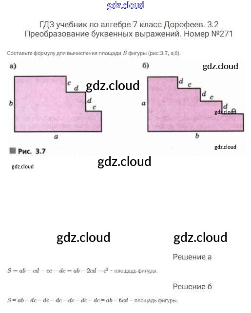 Ответ на задание 271 Учебник Алгебра  за 7 (седьмой) класс Дорофеев, Суворова, Бунимович Академический школьный учебник  2020