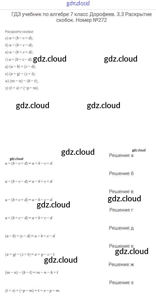 Ответ на задание 272 Учебник Алгебра  за 7 (седьмой) класс Дорофеев, Суворова, Бунимович Академический школьный учебник  2020