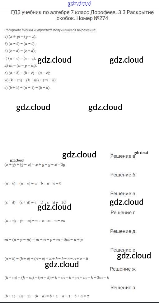 Ответ на задание 274 Учебник Алгебра  за 7 (седьмой) класс Дорофеев, Суворова, Бунимович Академический школьный учебник  2020