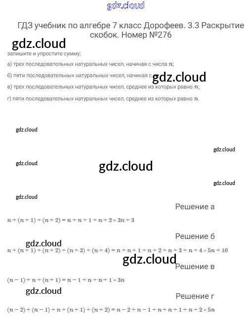 Ответ на задание 276 Учебник Алгебра  за 7 (седьмой) класс Дорофеев, Суворова, Бунимович Академический школьный учебник  2020