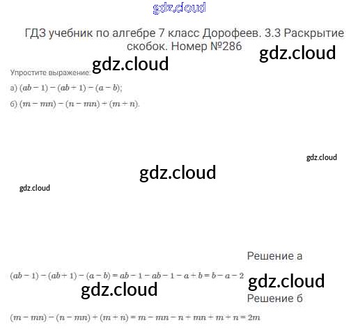 Ответ на задание 286 Учебник Алгебра  за 7 (седьмой) класс Дорофеев, Суворова, Бунимович Академический школьный учебник  2020