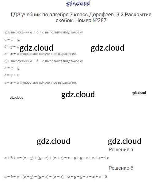 Ответ на задание 287 Учебник Алгебра  за 7 (седьмой) класс Дорофеев, Суворова, Бунимович Академический школьный учебник  2020