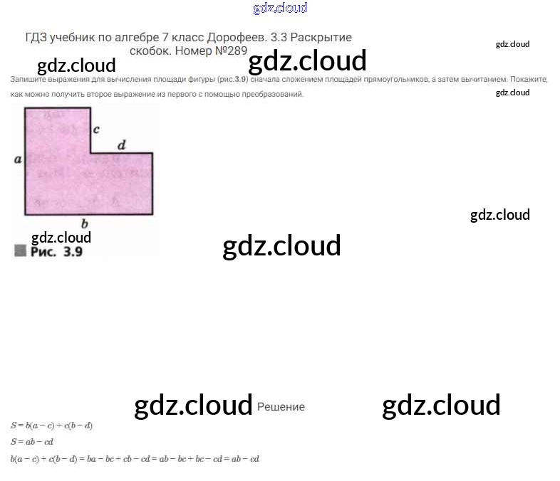 Ответ на задание 289 Учебник Алгебра  за 7 (седьмой) класс Дорофеев, Суворова, Бунимович Академический школьный учебник  2020