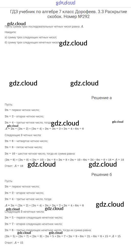 Ответ на задание 292 Учебник Алгебра  за 7 (седьмой) класс Дорофеев, Суворова, Бунимович Академический школьный учебник  2020