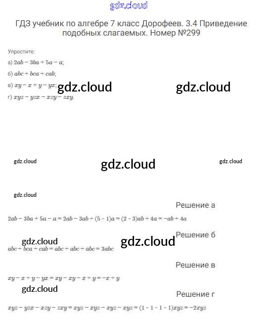 Ответ на задание 299 Учебник Алгебра  за 7 (седьмой) класс Дорофеев, Суворова, Бунимович Академический школьный учебник  2020