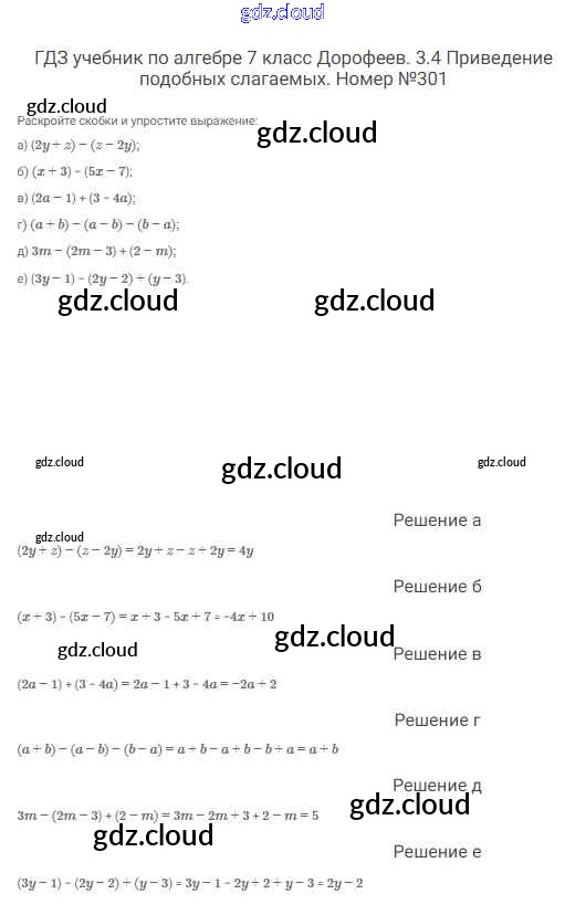 Ответ на задание 301 Учебник Алгебра  за 7 (седьмой) класс Дорофеев, Суворова, Бунимович Академический школьный учебник  2020