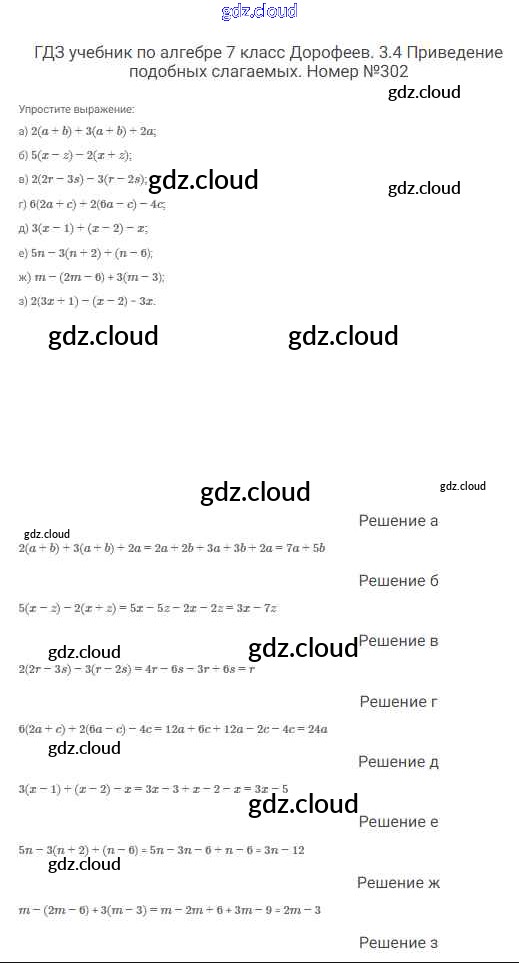 Ответ на задание 302 Учебник Алгебра  за 7 (седьмой) класс Дорофеев, Суворова, Бунимович Академический школьный учебник  2020