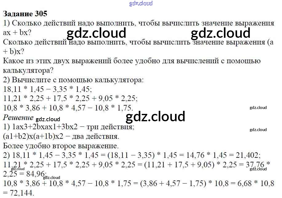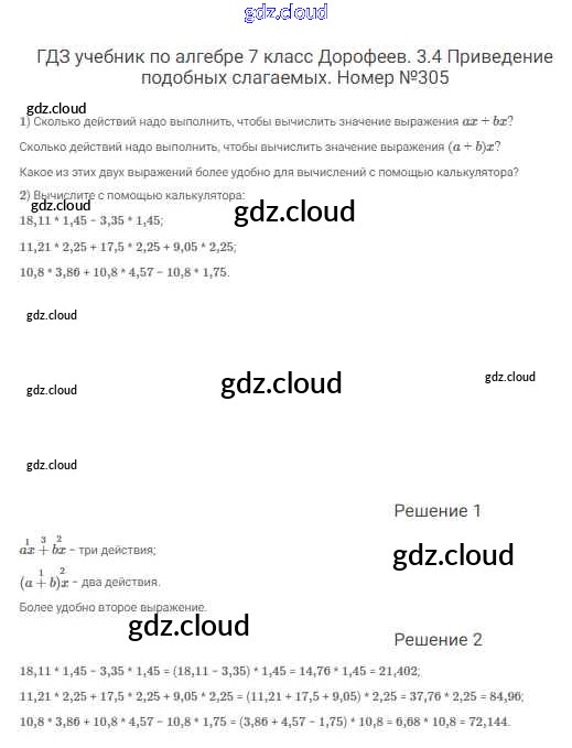 Ответ на задание 305 Учебник Алгебра  за 7 (седьмой) класс Дорофеев, Суворова, Бунимович Академический школьный учебник  2020