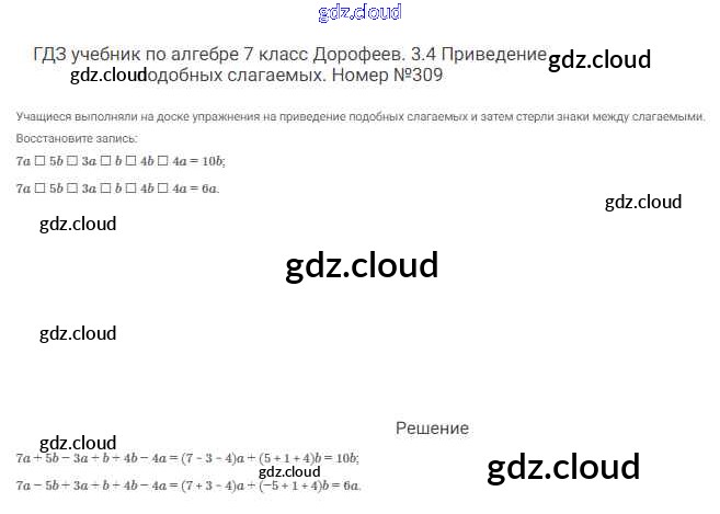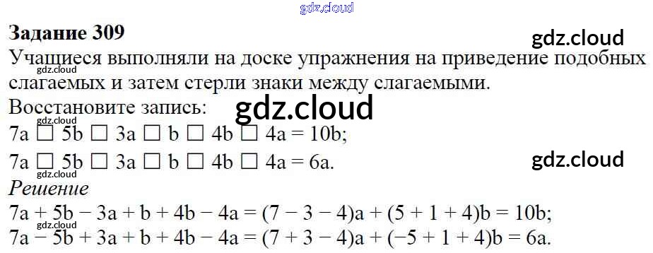 Ответ на задание 309 Учебник Алгебра  за 7 (седьмой) класс Дорофеев, Суворова, Бунимович Академический школьный учебник  2020