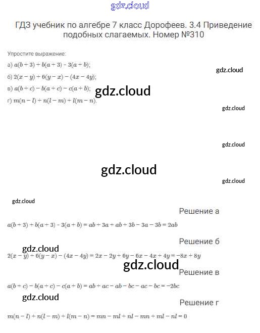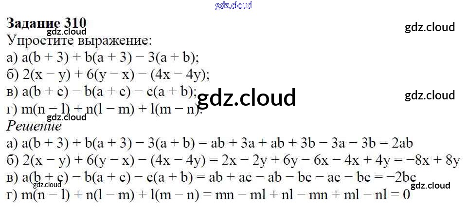 Ответ на задание 310 Учебник Алгебра  за 7 (седьмой) класс Дорофеев, Суворова, Бунимович Академический школьный учебник  2020