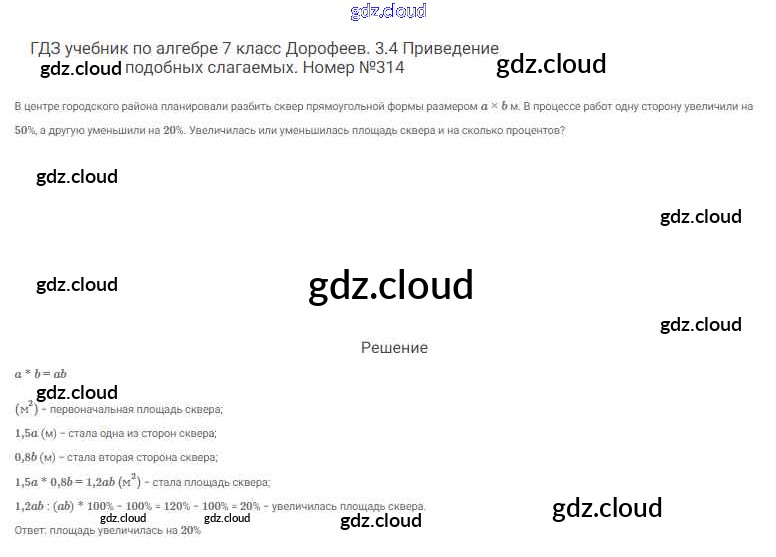 Ответ на задание 314 Учебник Алгебра  за 7 (седьмой) класс Дорофеев, Суворова, Бунимович Академический школьный учебник  2020