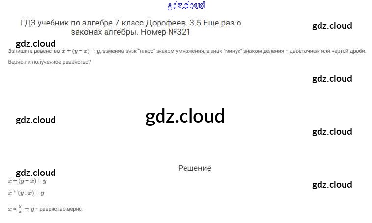 Ответ на задание 321 Учебник Алгебра  за 7 (седьмой) класс Дорофеев, Суворова, Бунимович Академический школьный учебник  2020
