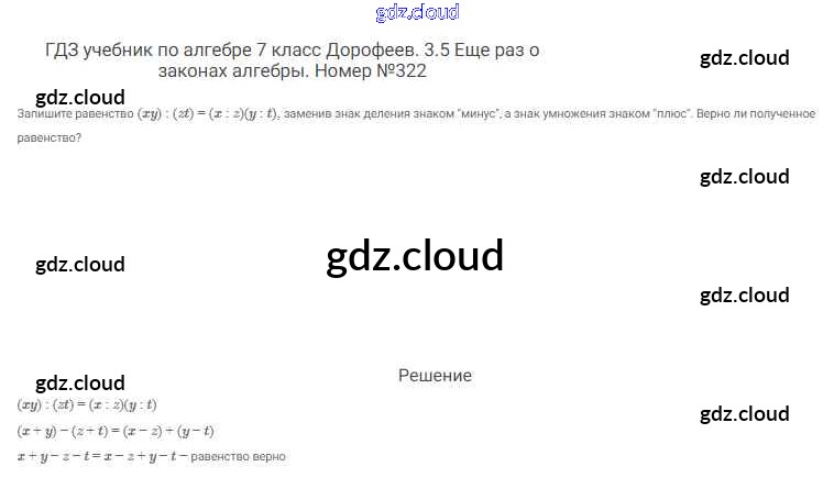 Ответ на задание 322 Учебник Алгебра за 7 (седьмой) класс Дорофеев, Суворова, Бунимович Академический школьный учебник 2020