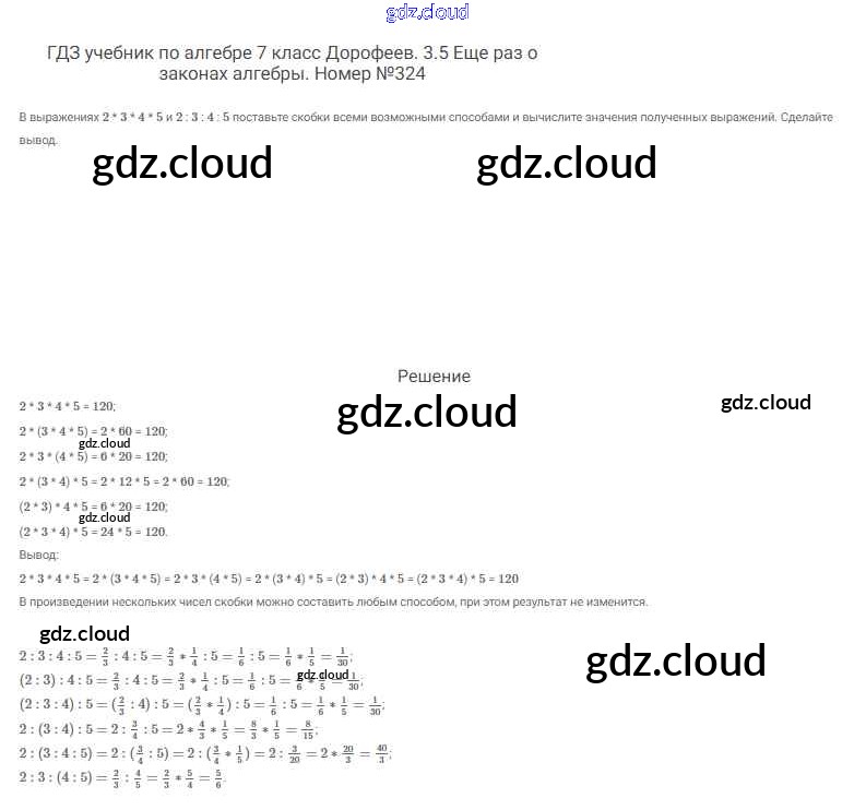 Ответ на задание 324 Учебник Алгебра  за 7 (седьмой) класс Дорофеев, Суворова, Бунимович Академический школьный учебник  2020
