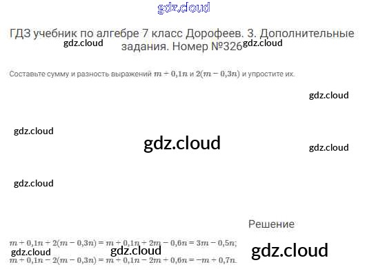 Ответ на задание 326 Учебник Алгебра  за 7 (седьмой) класс Дорофеев, Суворова, Бунимович Академический школьный учебник  2020