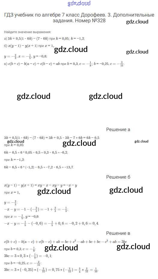Ответ на задание 328 Учебник Алгебра  за 7 (седьмой) класс Дорофеев, Суворова, Бунимович Академический школьный учебник  2020