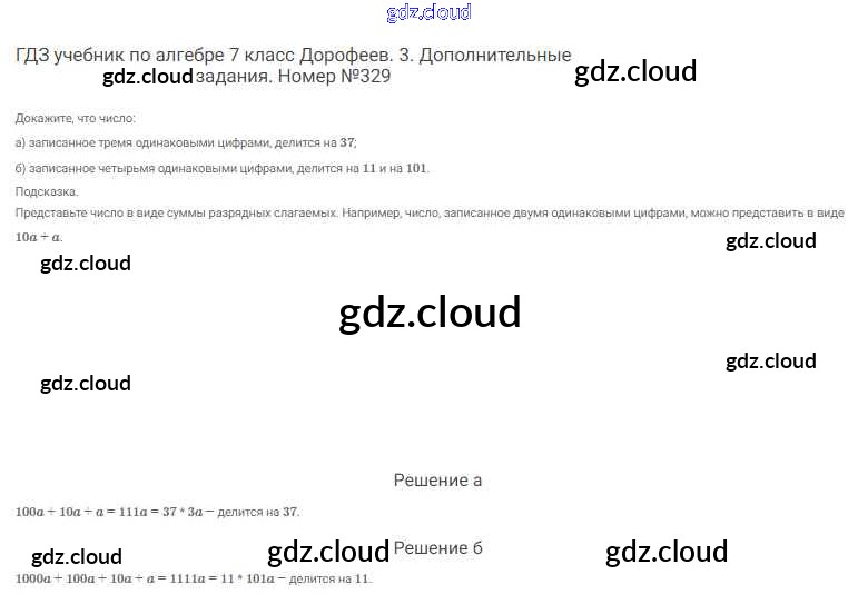 Ответ на задание 329 Учебник Алгебра  за 7 (седьмой) класс Дорофеев, Суворова, Бунимович Академический школьный учебник  2020