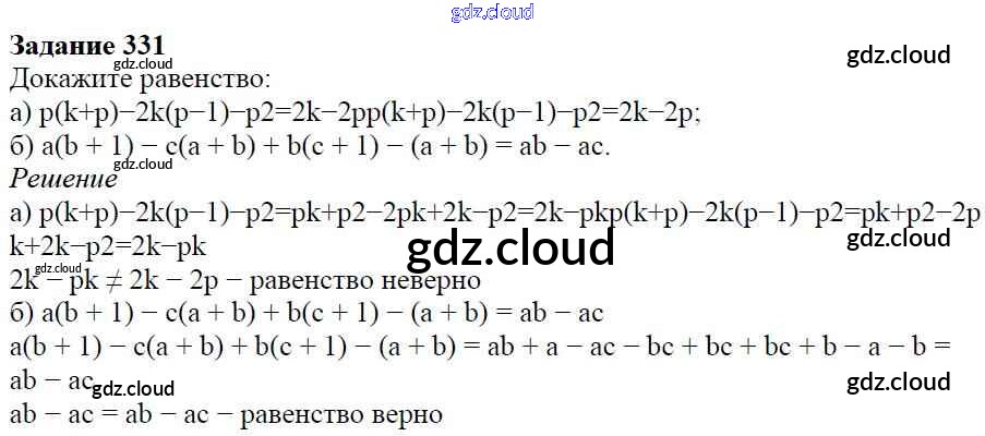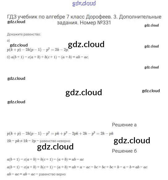 Ответ на задание 331 Учебник Алгебра  за 7 (седьмой) класс Дорофеев, Суворова, Бунимович Академический школьный учебник  2020